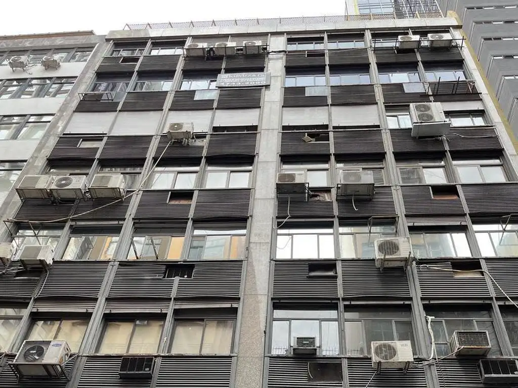 Ingreso a cochera por Avda. L. N. Alem. Frente con ventanales de vidrio. 3 ascensores automáticos.