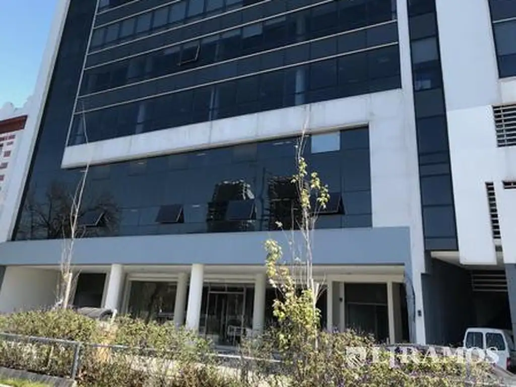 Edificio con gran frente vidriado, carpintería de perfilería de aluminio anodizado natural con termopaneles de cristal de alto rendimiento con absorción acústica, doble vidrio hermético con cámara de aire (DVH). Desarrollado en subsuelo, planta baja y 12 pisos. Cocheras (38), ubicadas en SS, PB, 1 y 2, entrada y salida con barreras y cortinas metálicas automatizadas, con parada de ascensores en los niveles superiores. Gran hall de entrada con doble altura. 3 ascensores (1 de ellos camillero) automáticos marca Shindler. Plantas libres con vista panorámica a río. Núcleo sanitarios para ambos sexos por semipiso, y sanitarios para discapacitados. Piso técnico: módulos de 60x60 cm, sobre pedestales telescópicos. Sistema de presurización de escaleras: calculado según Normas. Escalera escape con puertas F60 presurizable en caso de incendio. Grupo electrógeno de 40 KVA para alimentar la mayoría de los servicios generales del edificio (ascensores, bombas, iluminación de espacios comunes, acceso vehicular y sus cortinas y controles. Venta con renta