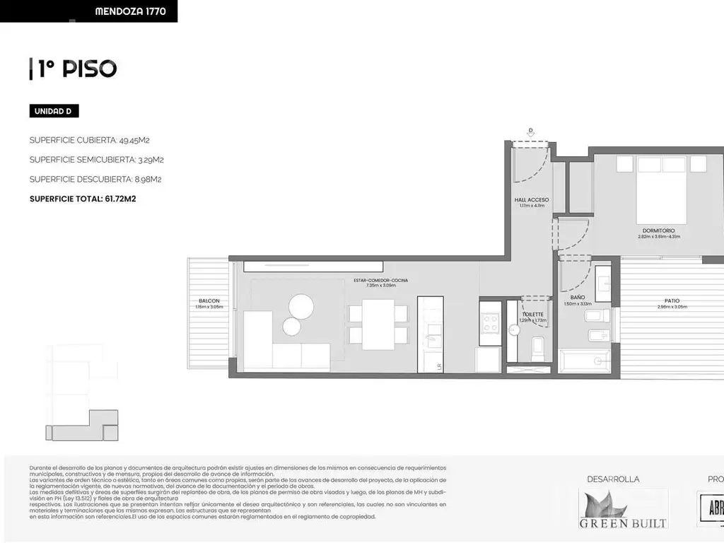 Todas las imágenes, planos, descripciones, y características indicadas son meramente referenciales e ilustrativas y podrán ser modificadas sin previo aviso. Las superficies indicadas son estimadas. Las superficies y medidas definitivas surgirán del plano de mensura final aprobado oportunamente por el GCBA. Las fechas de inicio de obra o posesión son estimadas, podrán ser reprogramadas por la Dirección de obra y dependerán a su vez de un proceso de aprobaciones municipales u otros organismos intervinientes. Los precios indicados podrán modificarse sin previo aviso. El interesado deberá realizar las verificaciones respectivas previamente a la realización de cualquier operación, requiriendo por sí o sus profesionales las copias necesarias de la documentación que corresponda.