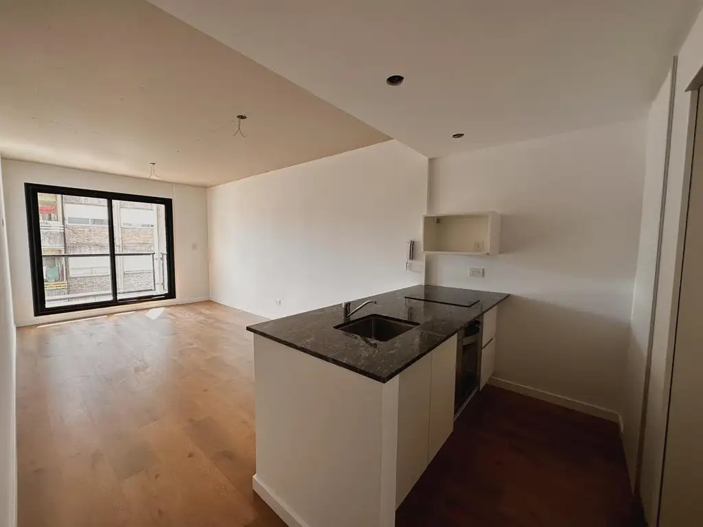 Ingreso a living comedor, cocina semi integrada con barra. Salida a balcón a la calle con orientación Norte. Ventilación cruzada. Baño completo. Dormitorio con placard con interiores terminados y salida a otro balcón.