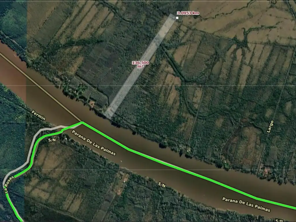 100m de costa sobre el Rio Paraná por 1300m de fondo. Canal para ingreso de lancha de aprox 30m.