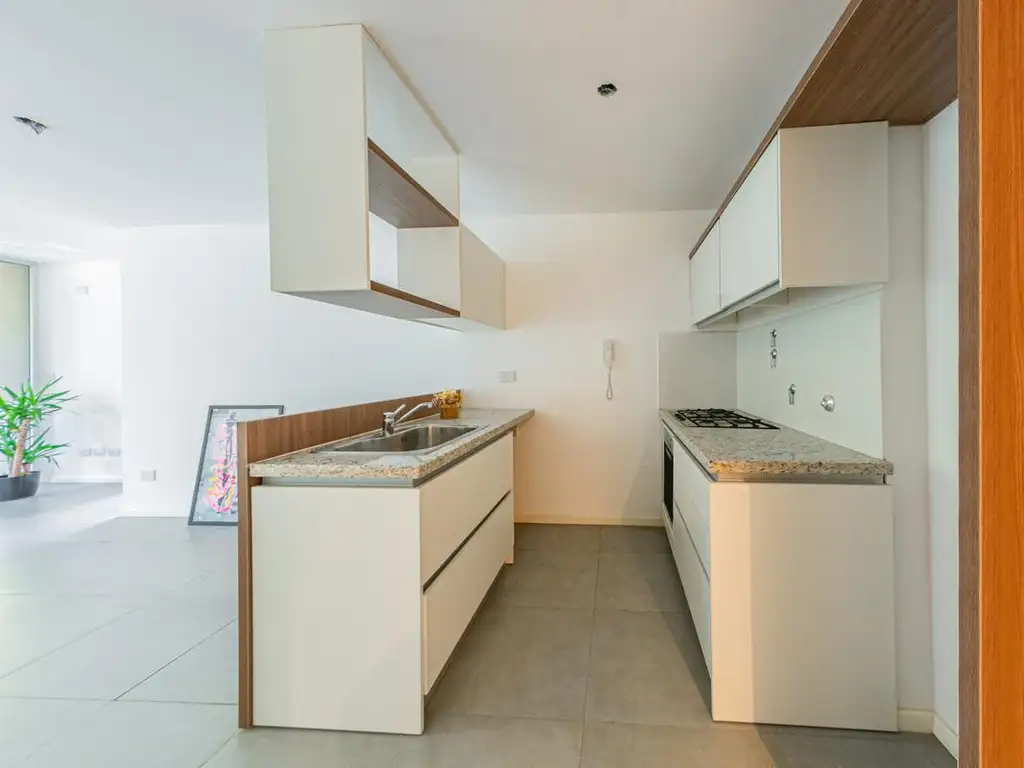 Departamento de calidad y luminoso. Ideal para vivienda o inversión. Con 1 dormitorio,gran balcón aterrazado al frente. Piso porcelanato esmaltado en toda la unidad también en palieres y living. Aberturas de aluminio blancas,puertas placas enchapadas con picaportes de bronce, placard con frente melamínico símil madera e interior completo. Baño amplio y griferías de primeras marcas. Cocina con amoblamiento completo. Con gran espacio de mesada, bacha de acero inoxidable marca Johnson. Gas: instalación para calefón, calefactores y cocina, caño con revestimiento Epoxi.