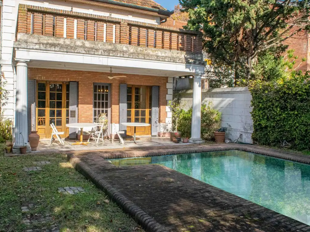 Exterior: La propiedad cuenta con piscina, jardín con parrilla, mesada con bacha, canilla estilo pozo y horno de barro. En el fondo, se encuentra un loft de estilo inglés y un departamento de un ambiente completo. Hay espacio descubierto para cuatro autos.