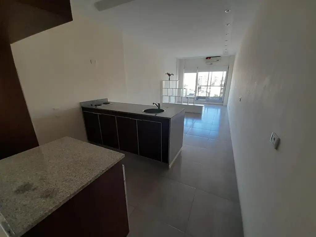 El amplio ambiente principal posee una división que permite sectorizar dormitorio y living, generando mayor privacidad y confort. Desde allí se accede a un balcón, que aporta muy buena luz natural y ventilación.