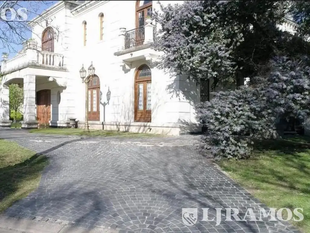 La entrada de la casa es de estilo imperial con terminaciones de porfido y tiene gran capacidad para 5 vehículos mas otro en semi cubierto debajo del sector parrilla. Se ingresa a la propiedad por gran puerta de doble hoja de madera que maciza, al hall central que conduce al living de 100m2 aprox. tiene un hogar de mármol negro igual que las escaleras que llevan a la planta alta, el living cuenta con radiadores antiguos y 2 aires acondicionados.