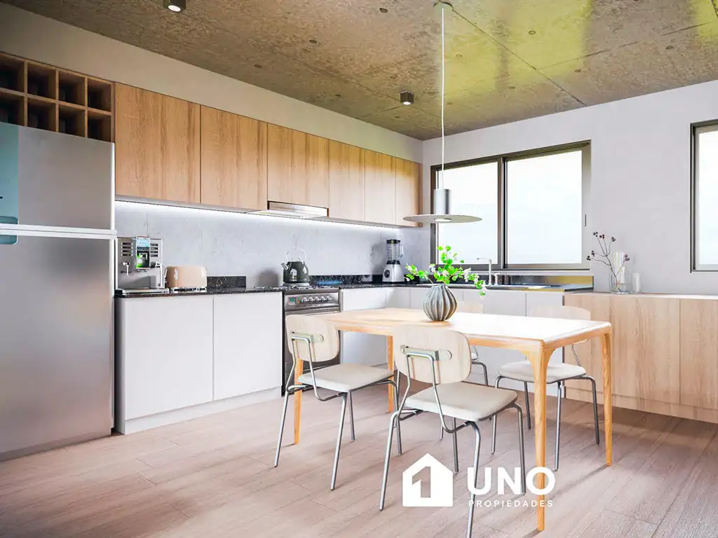 En planta baja se desarrolla un luminoso estar/comedor con salida a un balcón al frente. Además, cuenta con una cocina independiente con comedor diario, equipada con doble mesada en "L" y ventilación natural, y un toilette de recepción.