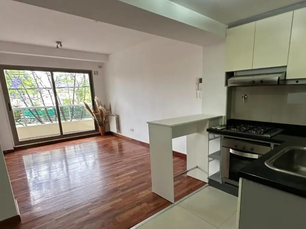 _ El mismo posee cocina equipada con muebles sobre y bajo mesada integrada al living comedor mediante una barra desayunadora, lavadero incorporado, un dormitorio con placard empotrado y un baño completo. Amplio y luminoso, cuenta con balcón y equipo de aire acondicionado.