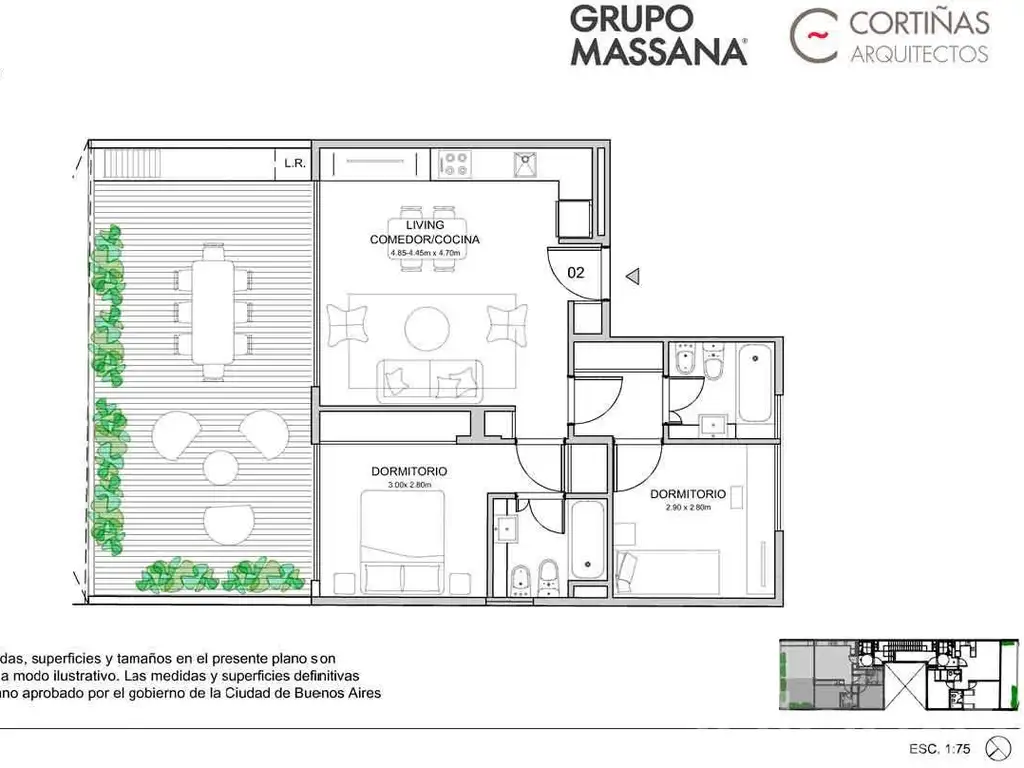 Todas las imágenes, planos, descripciones, y características indicadas son meramente referenciales e ilustrativas y podrán ser modificadas sin previo aviso. Las superficies indicadas son estimadas. Las superficies y medidas definitivas surgirán del plano de mensura final aprobado oportunamente por el GCBA. Las fechas de inicio de obra o posesión son estimadas, podrán ser reprogramadas por la Dirección de obra y dependerán a su vez de un proceso de aprobaciones municipales u otros organismos intervinientes. Los precios indicados podrán modificarse sin previo aviso. El interesado deberá realizar las verificaciones respectivas previamente a la realización de cualquier operación, requiriendo por sí o sus profesionales las copias necesarias de la documentación que corresponda.