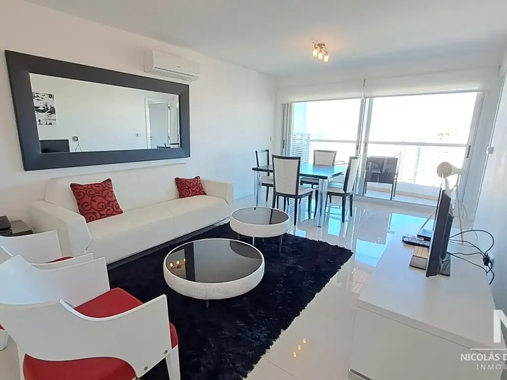 Consta de dos dormitorios y dos baños, uno de ellos en suite. Amplio living comedor con vista a Playa Mansa, Península y Playa Brava.
