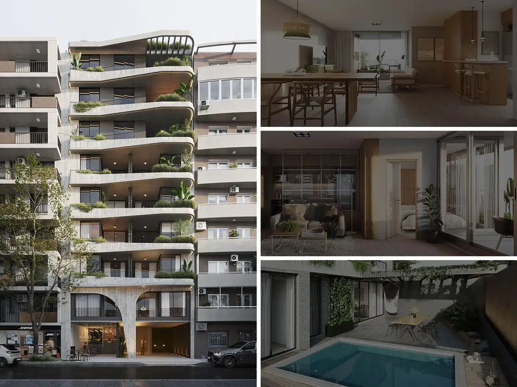 Unidades de 1, 2 y 3 dormitorios cuidadosamente diseñadas con detalles minimalistas que crean una sensación de serenidad y sofisticación. Amplias ventanas que permiten la entrada de abundante luz natural, realzando la belleza de los acabados. Ya sea una acogedora sala de estar, una cocina equipada con electrodomésticos de última generación o dormitorios tranquilos, estos departamentos ofrecen un estilo de vida moderno y cómodo que se adapta a las necesidades de sus residentes. El edificio en sí se destaca por su arquitectura innovadora y su diseño vanguardista. Unidades de 3 dormitorios con amplios balcones y parrilleros exclusivos. Piso 8 con terraza de uso exclusivo y pileta propia. Excelente calidad constructiva con doble muro compuesto aislado para máxima calidad térmica en medianeras, terminación con yeso en paredes y cielorraso, cerramiento de aluminio o similar de alta prestación con vidrios DVH (doble vidriado hermético), puerta de seguridad de ingreso a departamentos con tecnología de avanzada y cerradura Smart bluetooth, puertas interiores de alta prestación con marcos y hoja de WPC, con herrajes de tecnología, hermeticidad y alto peso específico, pisos, revestimientos y zócalos de porcelanato de primera línea, placares completos, con frente, fondos y laterales en madera revestidos en su totalidad, equipados en su interior con divisiones, cajoneras y barral, canteros integrados a la estructura del edificio, provistos de vegetación y automatizados con riego por goteo, estructuras metálicas con vegetación, iluminación en cielorraso, provisión de canilla de servicio de agua y toma de electricidad, preinstalación de aire acondicionado en todos los ambientes y puerto USB en dormitorios, parrilleros a carbón en balcones de unidades PISO 2o A 7o UNIDAD 03 Y 04 y PISO 8o A 13o: UNIDAD 02. Unidades de 1 dormitorio con termotanque eléctrico y calefactor a gas, las unidades de 2 y 3 dormitorios cuentan con caldera para agua caliente y calefacción mediante radiadores (no incluye artefactos). Mobiliario de cocinas completos con alacenas y bajo mesadas de diseño: MDF 18mm laminados con filos de PVC 2mm inyectados, zócalos de acero inoxidable o similar, iluminación en mobiliario, mesadas con regrueso, bacha de acero inoxidable con griferías, horno embutido y anafe separados sobre mesada, espacio provisto para purificadores de aire, mobiliario para lavarropas y termotanques, diseño de iluminación en cielorraso. Sanitarios y griferías de primera marca, bañera sin mampara o receptáculo de ducha, vanitory de diseño o mesada de mármol con bacha de apoyo, accesorios de baños y espejo retroiluminado, diseños en cielorraso con iluminación difusa.