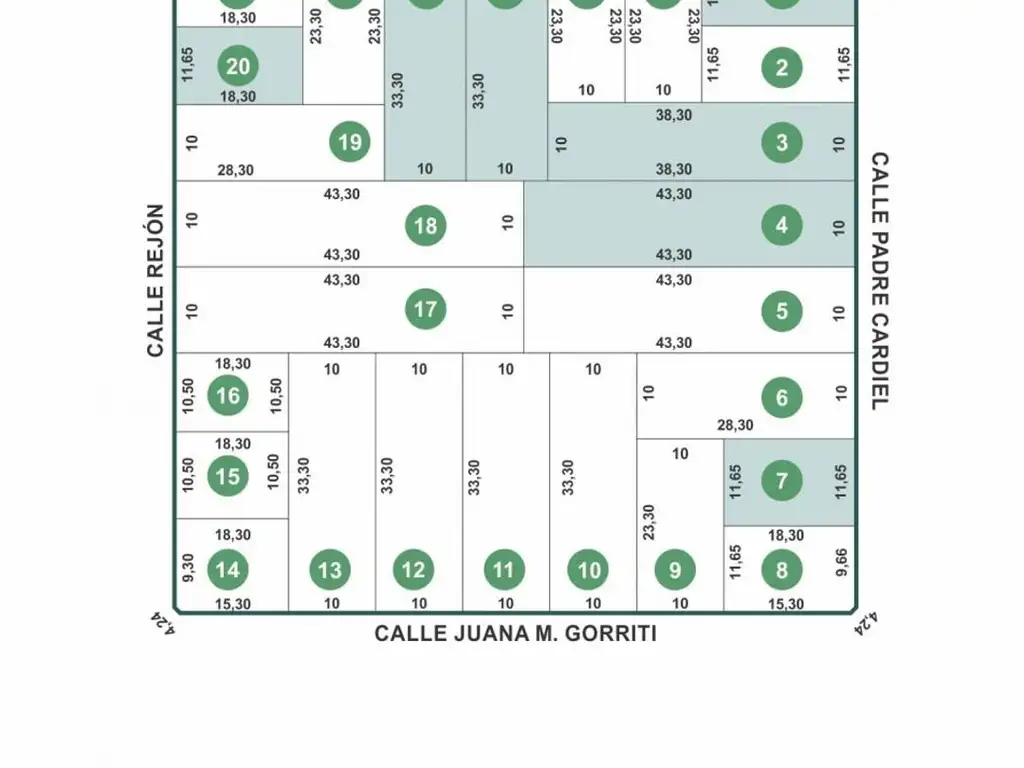 Lotes con frente sobre las calles Rejón, Unamuno y Cardiel. Todos poseen servicio de luz, gas, agua y cloaca.