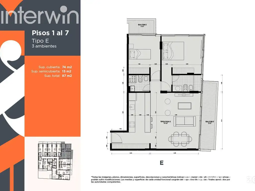 Todas las imágenes, planos, descripciones, y características indicadas son meramente referenciales e ilustrativas y podrán ser modificadas sin previo aviso. Las superficies indicadas son estimadas. Las superficies y medidas definitivas surgirán del plano de mensura final aprobado oportunamente por el GCBA. Las fechas de inicio de obra o posesión son estimadas, podrán ser reprogramadas por la Dirección de obra y dependerán a su vez de un proceso de aprobaciones municipales u otros organismos intervinientes. Los precios indicados podrán modificarse sin previo aviso. El interesado deberá realizar las verificaciones respectivas previamente a la realización de cualquier operación, requiriendo por sí o sus profesionales las copias necesarias de la documentación que corresponda.