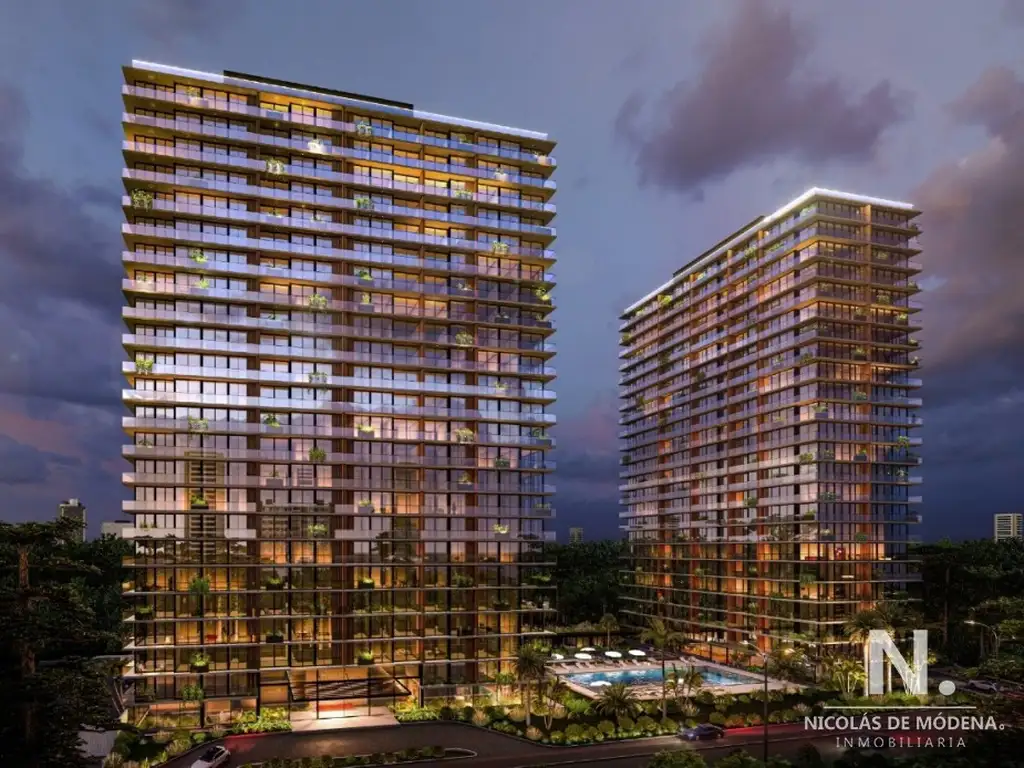 Moderno diseño con 23 pisos de departamentos. Cocheras en planta baja y 2 Subsuelo de cocheras