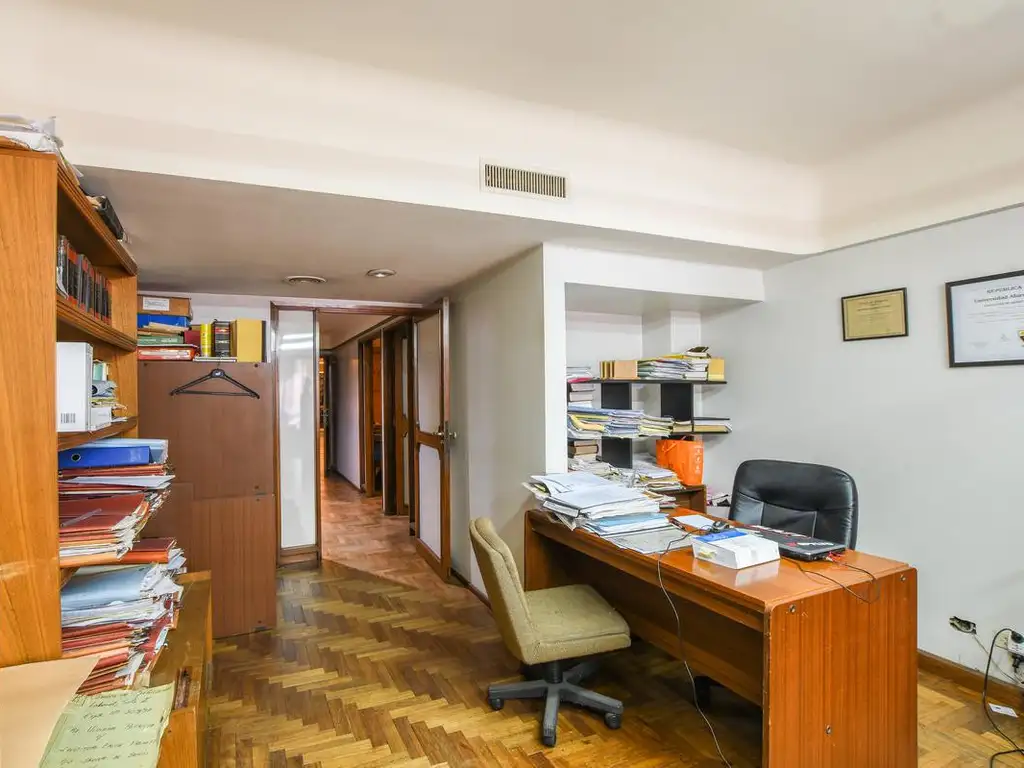 La oficina es un piso exclusivo, actualmente se encuentra dividida en dos, pero aun asi se ofrece en conjunto, estan conectadas, pero a su vez cada una tiene ingreso independiente.