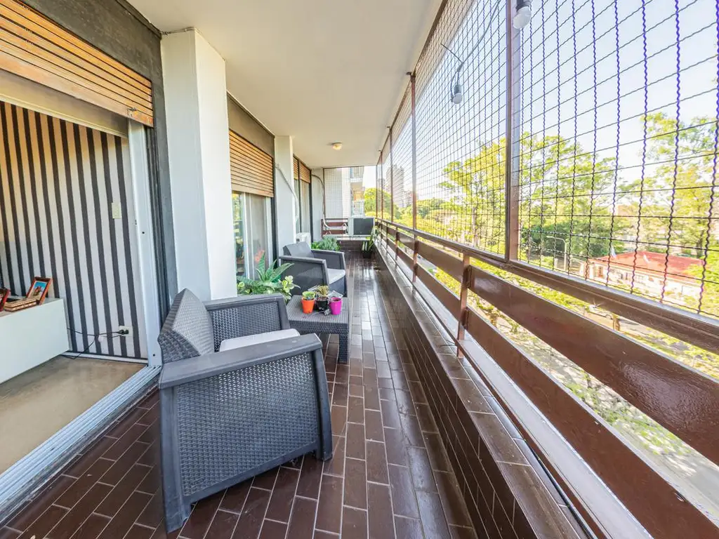 Departamento compuesto de doble ingreso a un hall que conecta con un amplio living comedor en desnivel con salida a un balcón corrido al frente, toilette de recepción, el secundario a una amplia cocina comedor con barra desayunadora, lavadero independiente, cuarto de servicio con baño, pasillo distribuidor del intimo, tres dormitorios el principal en suite, los secundarios con placar, ambos con salida a una galería con cerramiento al contra frente, un baño completo con bañera a compartir por estos.