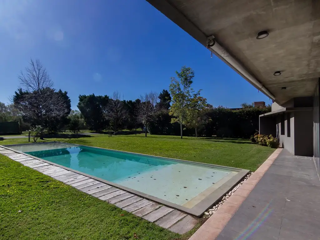 La casa está ubicada en "Los Alamos Club de Campo" que está conformado por 24 hectáreas totalmente forestadas, con 103 lotes de entre 1.000 y 2.000 Mts2, Club House con piscina, restaurante, gimnasio, cuarto de huéspedes, parrilleros, lago artificial, cancha de Golf de 9 hoyos, cancha de fútbol, dos canchas de tenis, y caballerizas con pista de equitación, escuela y boxes. El barrio tiene un excelente equilibrio respecto a cantidad de lotes y espacios comunes, siendo estos el 40% del total del predio de 24 hectáreas.