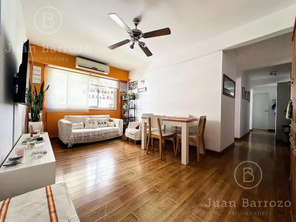 Gran living comedor con piso de madera flotante, estufa y aire acondicionado. Pasillo distribuidor súper ancho: 3 dormitorios con placard y piso madera flotante. El principal tiene aire acondicionado.