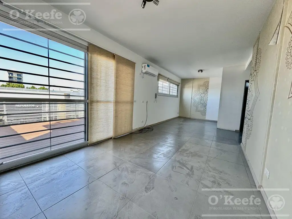 Departamento monoambiente con gran balcón terraza con deck de madera, vista abierta, amplio espacio living comedor y potencial para subdividir el sector privado o dormitorio, cocina con mesada y bacha, un baño completo con bañera y ventilación natural.