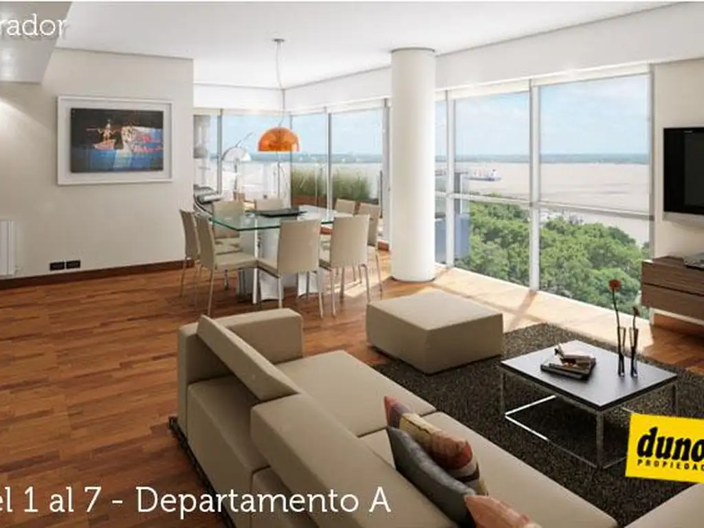 El edificio tiene amplias terrazas con vista al parque y el río, cocheras y bauleras en 3 niveles. También cuenta con un salón de usos múltiples, quincho cubierto con parrillero, piscina, solárium, gimnasio, sistema de seguridad y grupo electrógeno.