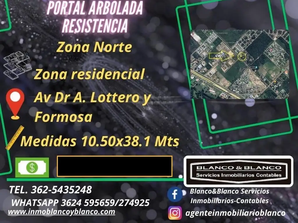 Terreno de 10.50x38.1 metros en Zona Norte de Resistencia, Portal Arbolada, Zona Residencial. Ubicado en Av. Doctor Antonio Alvarez Lottero y casi Calle Formosa.