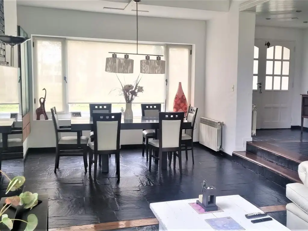 PB: Hall de recepcion con Placard - Toilette - Living con Hogar - Comedor ppal + comedor diario- Cocina con Desayunador - Quincho cubierto con Parrilla - Lavadero Independiente - Piscina revestida - Espacio Cochera para 2 Autos - Calefacción por radiadores y A.Acond .