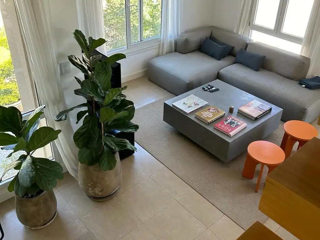 Amplio departamento de 98 M2 CUBIERTOS. El complejo NO tiene amenities. AMBIENTES: PB Toillete de recepción, comedor, living. Cocina integrada. Balcón con parrila y conexión para lavarropas. PA: dormitorio, baño completo y amplio espacio para 2 dormitorio PLAY o escritorio. Departamento en esquina con Inmejorable vista desde living al los jardines y desde la cocina y balcón a campos