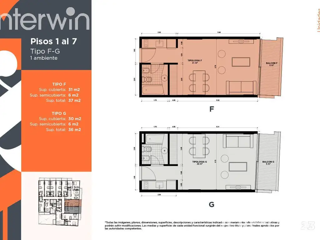 Todas las imágenes, planos, descripciones, y características indicadas son meramente referenciales e ilustrativas y podrán ser modificadas sin previo aviso. Las superficies indicadas son estimadas. Las superficies y medidas definitivas surgirán del plano de mensura final aprobado oportunamente por el GCBA. Las fechas de inicio de obra o posesión son estimadas, podrán ser reprogramadas por la Dirección de obra y dependerán a su vez de un proceso de aprobaciones municipales u otros organismos intervinientes. Los precios indicados podrán modificarse sin previo aviso. El interesado deberá realizar las verificaciones respectivas previamente a la realización de cualquier operación, requiriendo por sí o sus profesionales las copias necesarias de la documentación que corresponda.