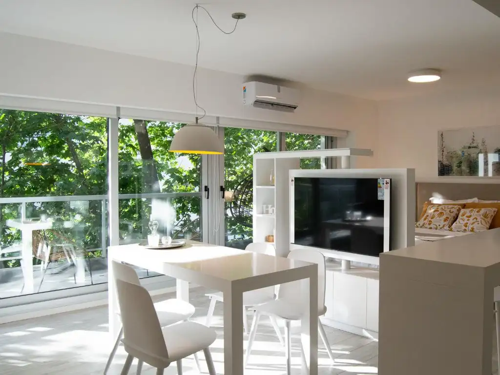 La unidad dispone de amplio ambiente principal con salida al balcón, cocina completa integrada al living con barra, 1 baño completo y vestidor.