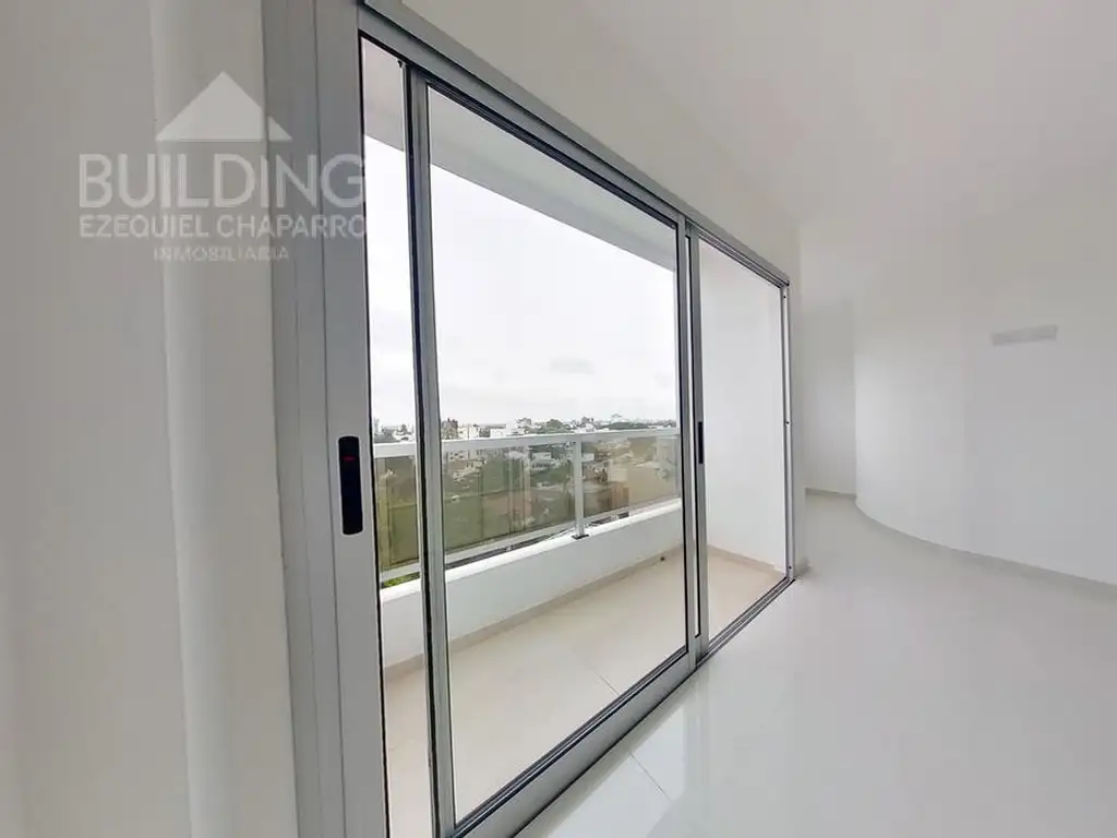 Carpintería: al frente con piel de vidrio tonalizado reflectivo, al contra frente marcos y hojas corredizas de aluminio anodizado. Puertas interiores con hoja y marco de madera pintadas en color blanco. Placares con puertas corredizas, frente integral pintado en color blanco, sin interiores. Balcón con paño vidriado y baranda de aluminio anodizado.