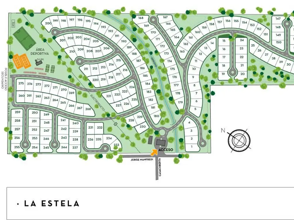 _ Acceso por calle de asfalto con todos los servicios disponibles en el lugar. El barrio cuenta con: