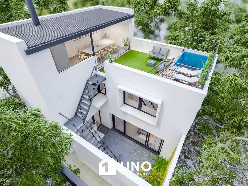 La tercer planta cuenta con un quincho semicubierto con parrillero, un cuarto baño, lavadero independiente y acceso a una terraza exclusiva de gran tamaño, equipada con deck y pileta.