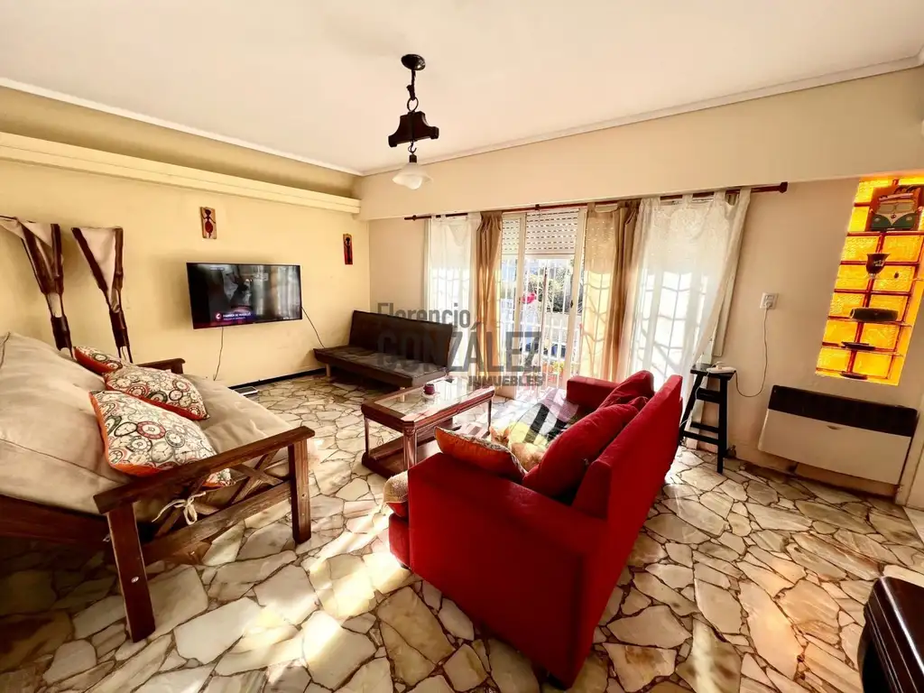 PLANTA BAJA: estar amplio, cocina separada con comedor diario, amoblada en bajo mesada y alacena con ventilación natural y salida a patio amplio. Por hall intimo se accede a 2 amplios dormitorios con placard, uno con ventilación a la calle y otro al patio, en el medio baño completo con antebaño. Fondo libre amplio.