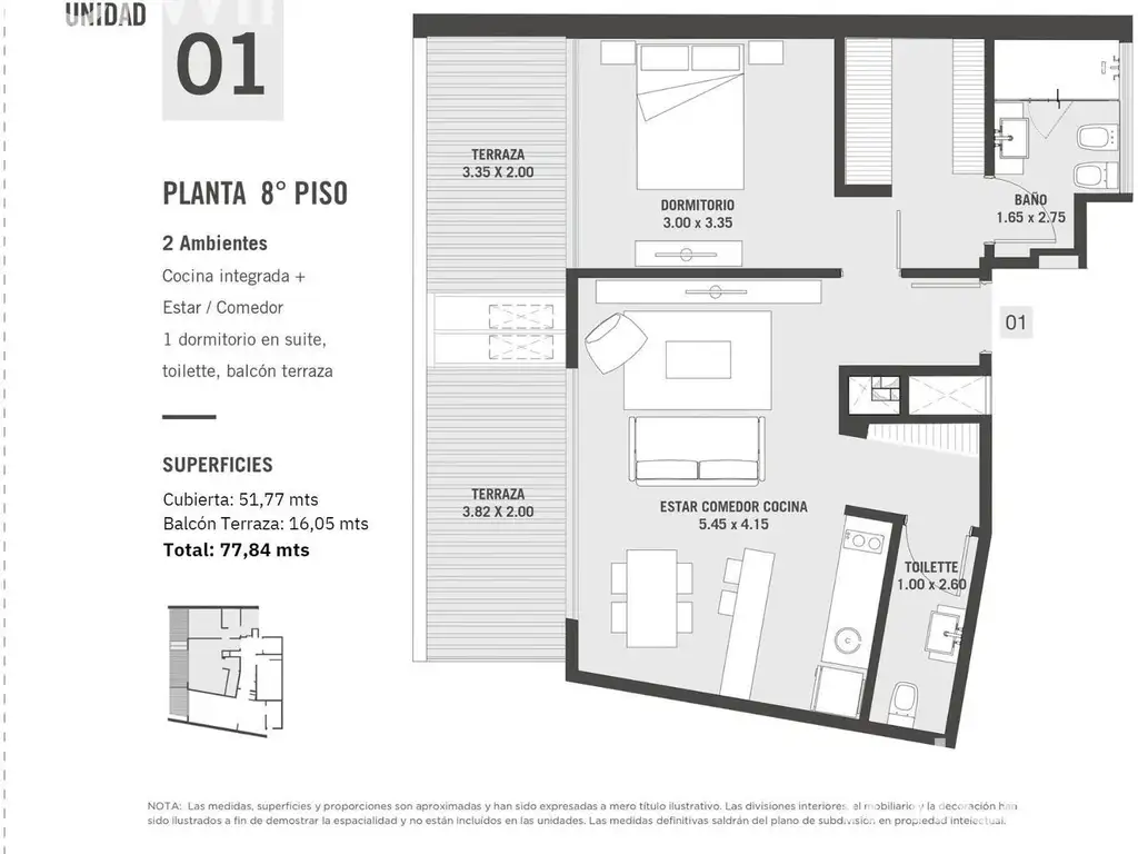 Todas las imágenes, planos, descripciones, y características indicadas son meramente referenciales e ilustrativas y podrán ser modificadas sin previo aviso. Las superficies indicadas son estimadas. Las superficies y medidas definitivas surgirán del plano de mensura final aprobado oportunamente por el GCBA. Las fechas de inicio de obra o posesión son estimadas, podrán ser reprogramadas por la Dirección de obra y dependerán a su vez de un proceso de aprobaciones municipales u otros organismos intervinientes. Los precios indicados podrán modificarse sin previo aviso. El interesado deberá realizar las verificaciones respectivas previamente a la realización de cualquier operación, requiriendo por sí o sus profesionales las copias necesarias de la documentación que corresponda.