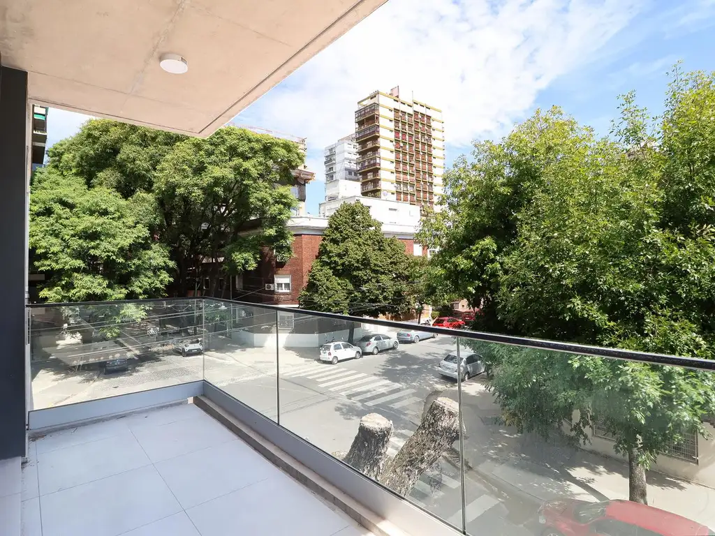 Ubicado al frente y lleno de luz, rodeado de edificaciones bajas que le dan una amplia vista desde su balcón