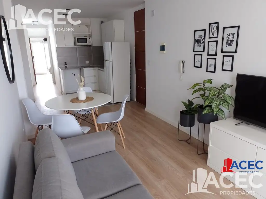 La unidad presenta un luminoso y espacioso living-comedor con salida al balcón al frente.Cocina semi-integrada con amoblamientos completos. La misma se encuentra equipada con anafe eléctrico; bajo mesada; alacenas; y termotanque. Con espacio para lavarropas y heladera contemplados.