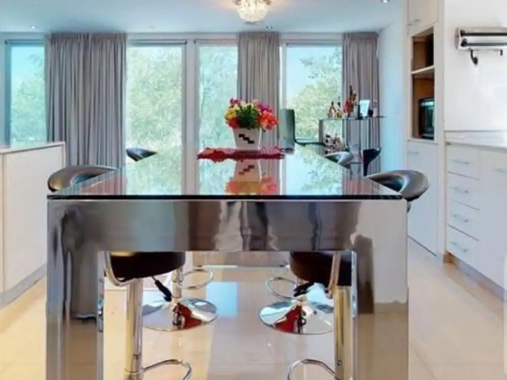 PA. Living, cocina completa, una master suite de importante tamaño, cabina de ducha, doble bacha todo hecho de mármol, jacuzzi para 2 personas, un gran vestidor, un dormitorio mas o escritorio.