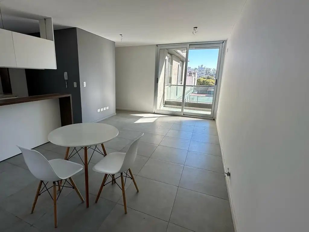 Cocina semi integrada, luminoso living comedor.