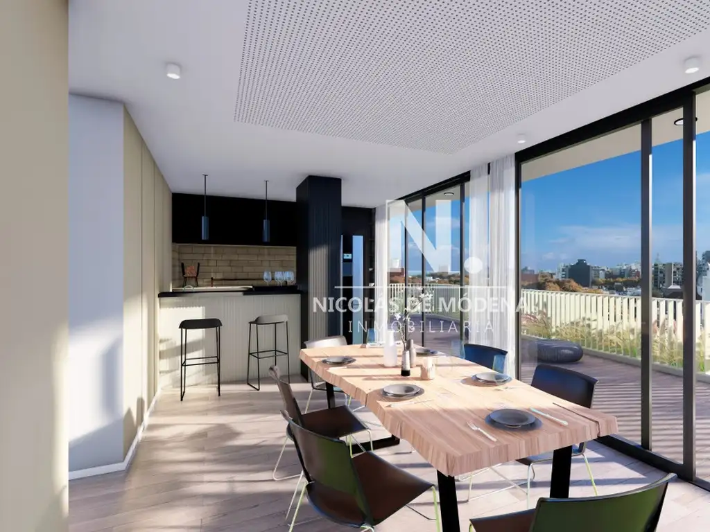 La cocina integrada fluye suavemente hacia el living comedor, creando un espacio abierto y luminoso, ideal para relajarse o entretener a los invitados.