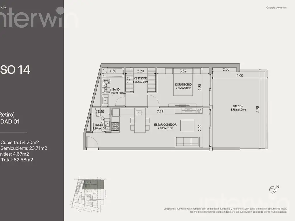 Todas las imágenes, planos, descripciones, y características indicadas son meramente referenciales e ilustrativas y podrán ser modificadas sin previo aviso. Las superficies indicadas son estimadas. Las superficies y medidas definitivas surgirán del plano de mensura final aprobado oportunamente por el GCBA. Las fechas de inicio de obra o posesión son estimadas, podrán ser reprogramadas por la Dirección de obra y dependerán a su vez de un proceso de aprobaciones municipales u otros organismos intervinientes. Los precios indicados podrán modificarse sin previo aviso. El interesado deberá realizar las verificaciones respectivas previamente a la realización de cualquier operación, requiriendo por sí o sus profesionales las copias necesarias de la documentación que corresponda.