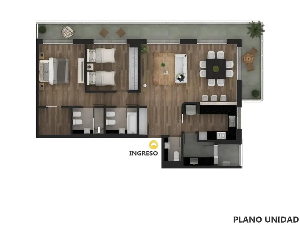 Imponente departamento con ingreso a estar comedor saliendo al balcón corrido al Norte con vista al Río. Cocina americana semi integrada. Lavadero independiente asistido por balcón de servicio. Suite principal con vestidor y acceso al voladizo. Segunda habitación con placard asistida por baño completo.-