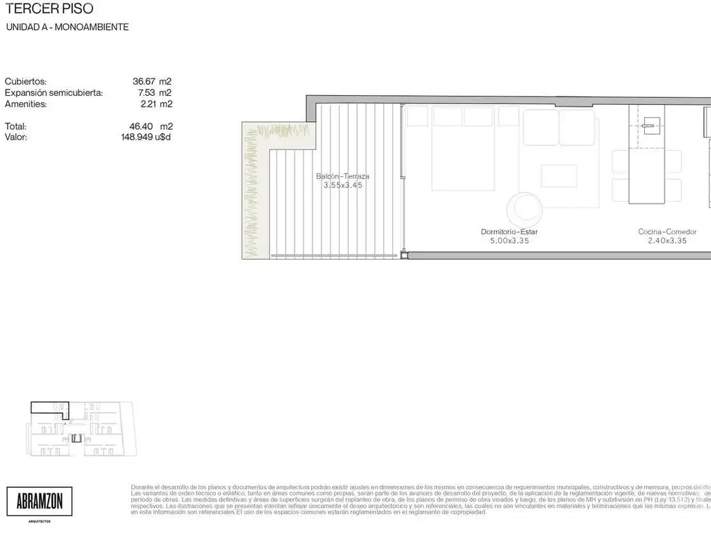Todas las imágenes, planos, descripciones, y características indicadas son meramente referenciales e ilustrativas y podrán ser modificadas sin previo aviso. Las superficies indicadas son estimadas. Las superficies y medidas definitivas surgirán del plano de mensura final aprobado oportunamente por el GCBA. Las fechas de inicio de obra o posesión son estimadas, podrán ser reprogramadas por la Dirección de obra y dependerán a su vez de un proceso de aprobaciones municipales u otros organismos intervinientes. Los precios indicados podrán modificarse sin previo aviso. El interesado deberá realizar las verificaciones respectivas previamente a la realización de cualquier operación, requiriendo por sí o sus profesionales las copias necesarias de la documentación que corresponda.