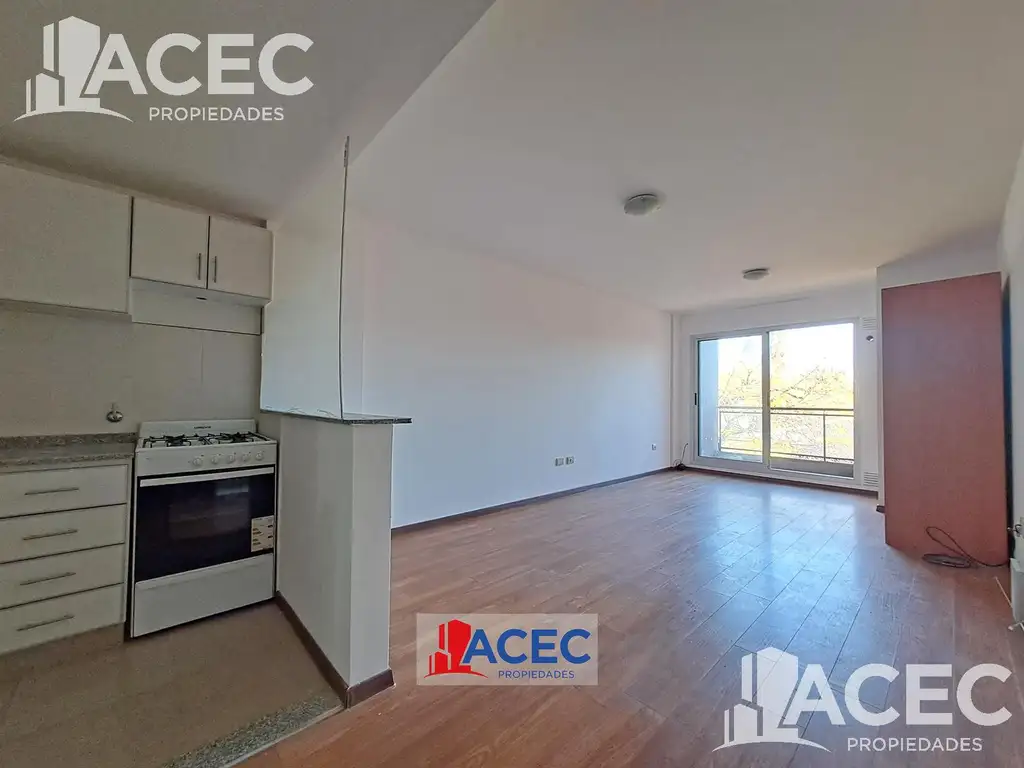 El departamento se compone de un amplio ambiente único con pisos flotantes de primera calidad y salida al balcón a través de gran ventanal con aberturas de aluminio.
