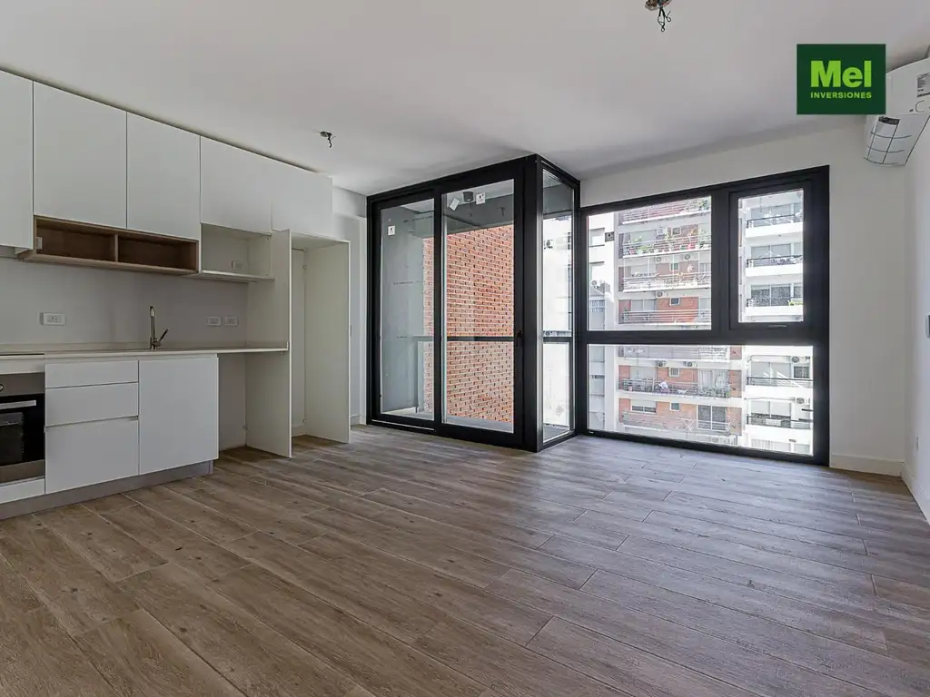 La unidad dispone de un amplio living comedor con cocina integrada de estilo moderno, Dormitorio en suite y balcón.