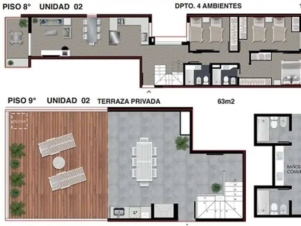 Unidades de 3 dormitorios opción: patio con parrilla o balcón con parrilla desde 112 m2.