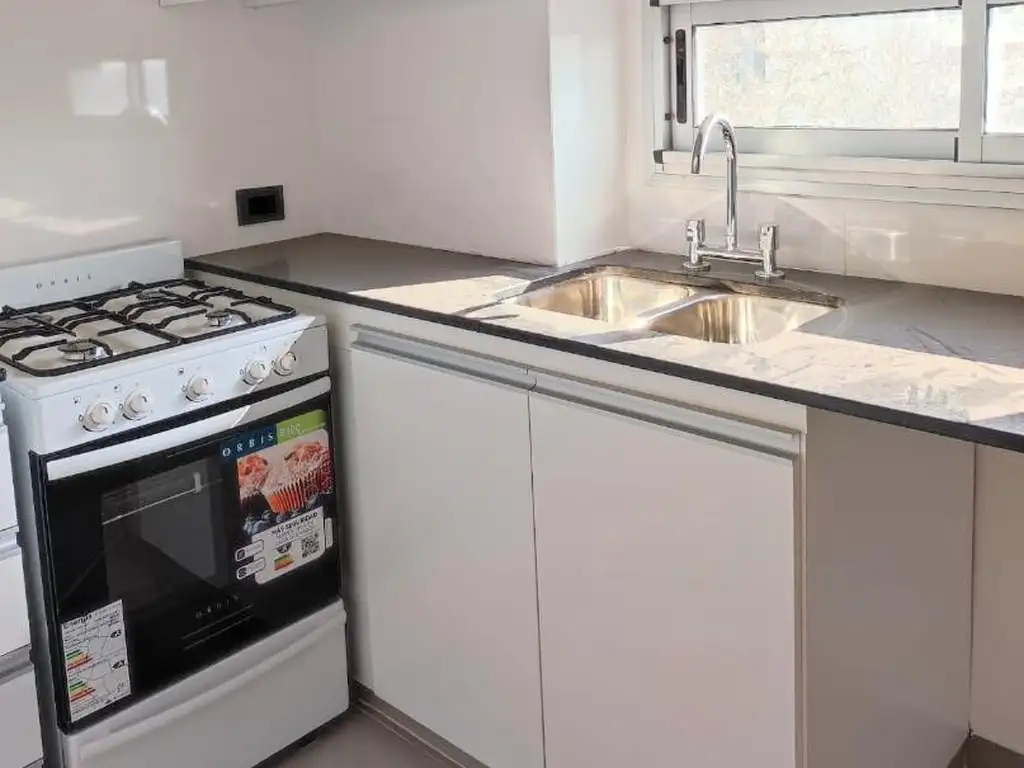 Al frente de doble ventanal muy luminoso con pisos de porcelanato, cocina completa separada gran sala de estar.