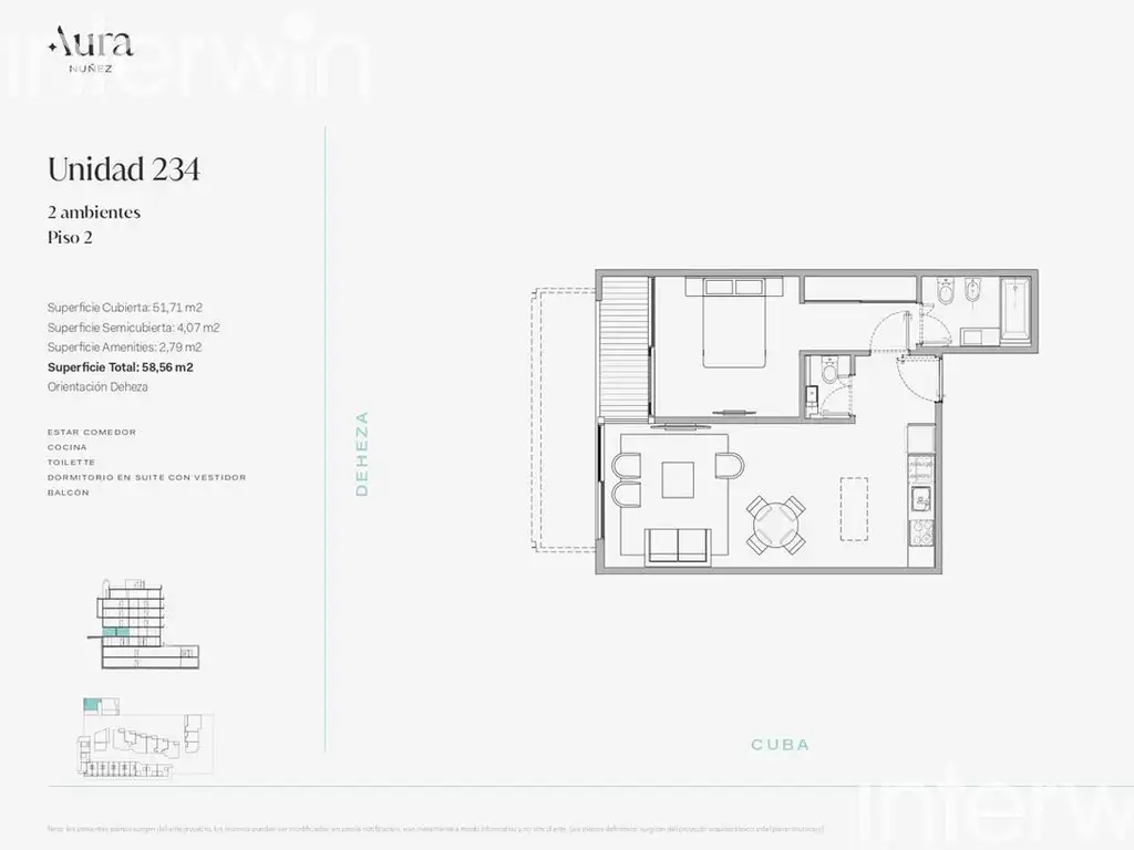 Todas las imágenes, planos, descripciones, y características indicadas son meramente referenciales e ilustrativas y podrán ser modificadas sin previo aviso. Las superficies indicadas son estimadas. Las superficies y medidas definitivas surgirán del plano de mensura final aprobado oportunamente por el GCBA. Las fechas de inicio de obra o posesión son estimadas, podrán ser reprogramadas por la Dirección de obra y dependerán a su vez de un proceso de aprobaciones municipales u otros organismos intervinientes. Los precios indicados podrán modificarse sin previo aviso. El interesado deberá realizar las verificaciones respectivas previamente a la realización de cualquier operación, requiriendo por sí o sus profesionales las copias necesarias de la documentación que corresponda.