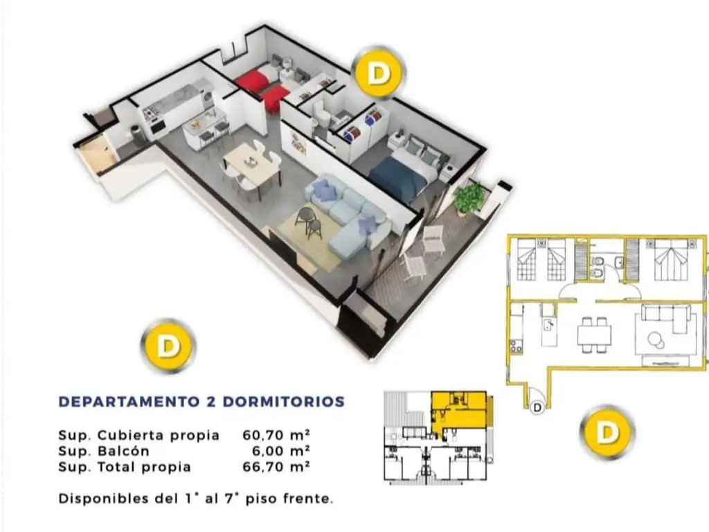 Tenemos departamentos de 1 y 2 dormitorios.