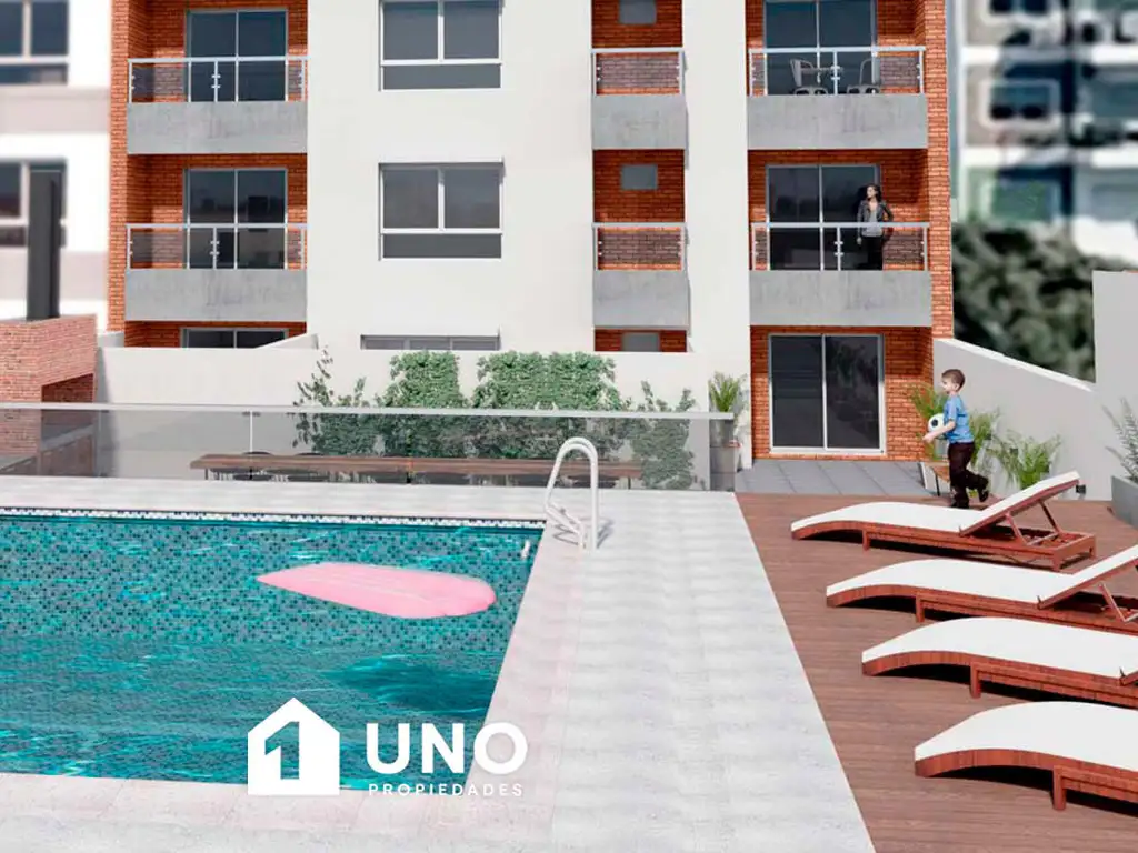 Edificio con 3 niveles de cocheras, SUM, áreas recreativas con parrillero, piscina y solárium.