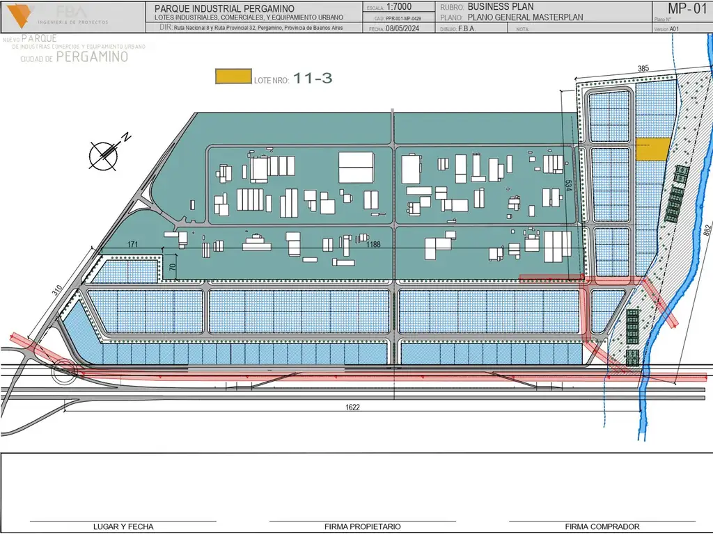 Este nuevo Parque Industrial emplazado en 64 hectáreas de extensión, con un frente de 1500 metros sobre la NUEVA AUTOVIA NACIONAL N° 8 y lindero con el actual Parque Industrial de Pergamino lo convierte en el desarrollo industrial mas importante del Nor-oeste de la Povincia de Buenos Aires. Conformando la sumatoria de ambos, una superficie total de 150 Hectareas!