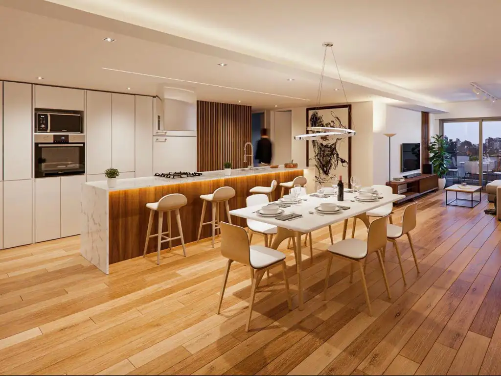 Calidades nobles orientadas a una arquitectura moderna con pisos vinílico/ porcelanato, todo con su correspondiente zócalo de 1/2 x3.